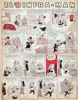Presento su primera portada (cuyo autor es Carybé), las dos primeras páginas del personaje estrella: El Infra- Man (guionado por León Benarós y dibujado por Alberto Del Castillo), Vista Brava, de Daloisio y algunos dibujos de Vic Martin y Landrú.